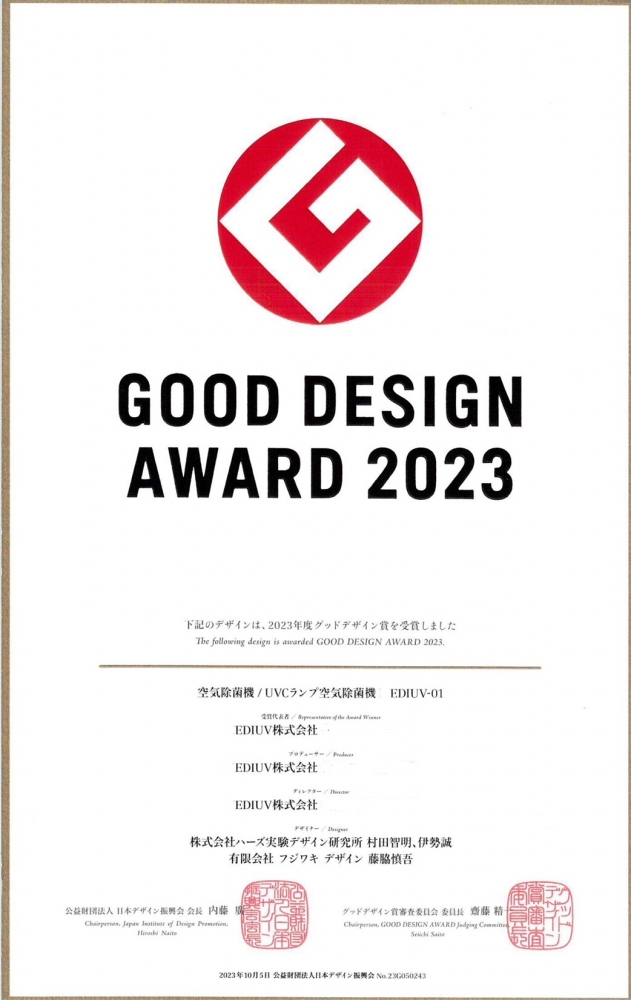 英光ライティング株式会社は、グッドデザイン賞2023を受賞した空気除菌機